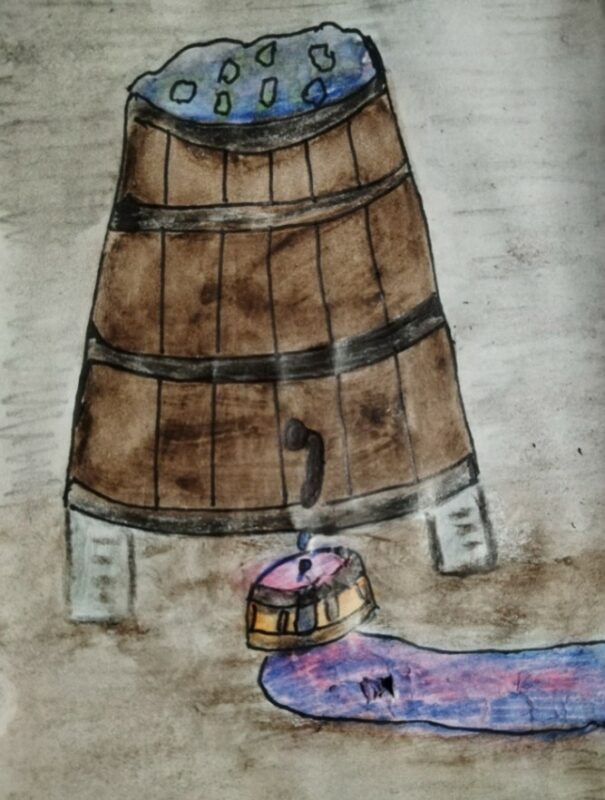 Dopo aver colto dei fichi dalla pianta che era vicino alla porta di cantina, si mise a sedere sotto al tino, un po’ mangiava i fichi e un po’ beveva. Mio padre lo lasciò fare anche perché voleva vedere come andava a finire, visto che esiste un proverbio che dice: