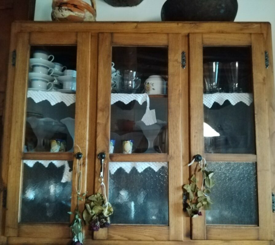 Messa la tovaglia, dovevamo prendere giù piatti e bicchieri che si trovavano nella vetrinetta più alta, ma nessuno arrivava fin lassù, allora la mamma avvicinò una sedia, mi aiutò a salirci sopra e mi disse di porgerle i bicchieri.