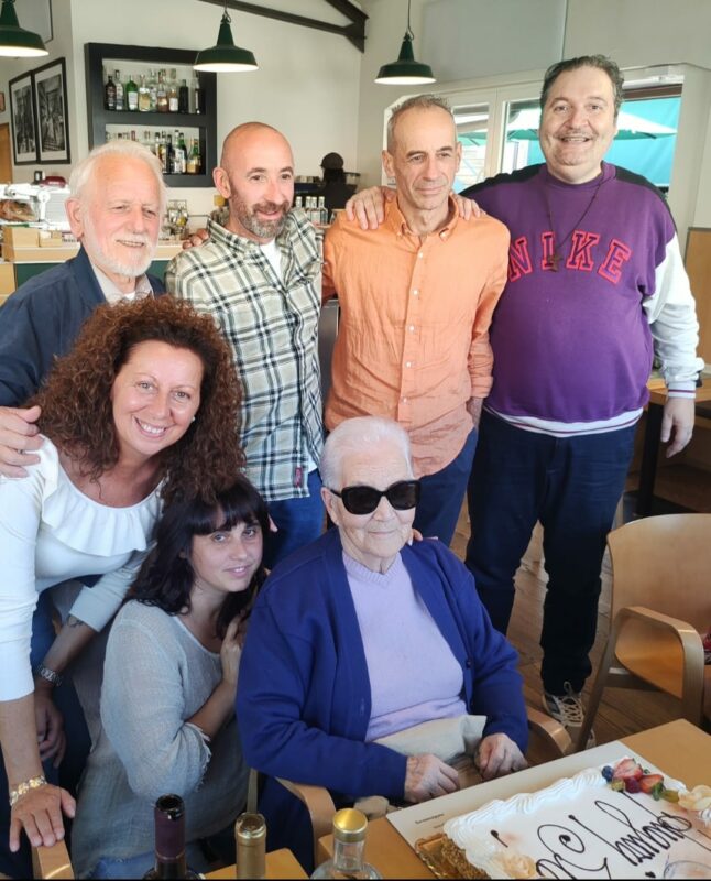 Nella foto assieme a Jole, da destra il figlio Massimo, i nipoti Luca e Steven giunti da Paisley, e poi Leonello, Debora e Sara