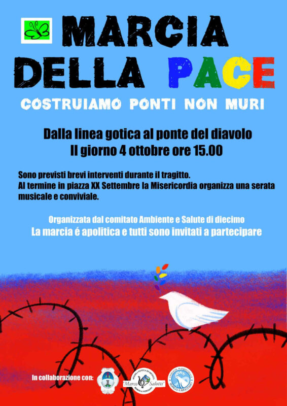BORGO A MOZZANO – “Costruiamo ponti, non muri”. Con questa frase viene lanciato l’appello a partecipare alla “Marcia della Pace” che si terrò a Borgo a Mozzano il 4 ottobre, nel giorno di San Francesco.