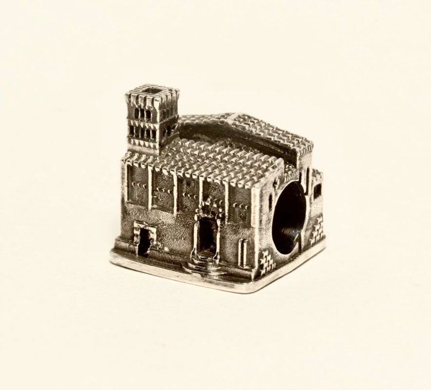 Realizzato interamente a mano nei laboratori orafi del brand, il gioiello è in argento 925 brunito e racchiude l’essenza del Duomo, reinterpretandone i dettagli architettonici attraverso una lavorazione artigianale di alta precisione. Ogni rilievo e incisione richiama la pietra e le linee romaniche della cattedrale.