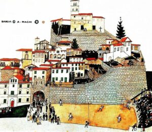 In questo 1980, che si affacciava alla vita di Barga nel segno dell’irrimediabile perdita dei due artisti or ora ricordati, ricorreva una data molto importante appartenente strettamente a quel mondo, perché cento anni prima, a Fauglia (Pi), era nato Alberto Magri. Per il mondo della pittura barghigiana e non solo, quest’appuntamento, già anticipato nel precedente 1979, in cui ricorrevano i quaranta anni dalla morte sempre di Magri, quando nel febbraio gli era stato intitolato l’istituto tecnico per ragionieri, quest’insieme di date, fece nascere tra le fila della cultura locale diverse idee celebrative, tristemente rinforzate dalla morte di Vittorini e Cordati nel dicembre. Intanto, come preparativo al 1980 del centenario Magri, in Barga si va diffondendo un bellissimo manifesto che riproduce una sua straordinaria opera ad acquarello “Il Castello di Barga” eseguita tra il 1909-1911, (vedi immagine qui a fianco).