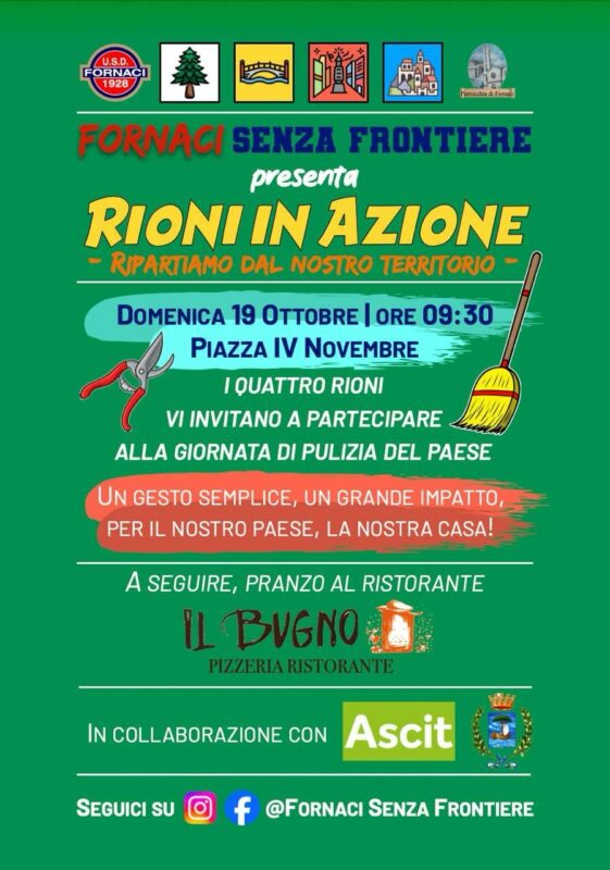 FORNACI – “Rioni in azione” si chiama così la nuova iniziativa che a Fornaci, sulla scia dell’entusiasmo dopo i giochi rionali di giugno che hanno davvero creato un nuovo clima nella comunità, si svolgerà domenica 19 ottobre.