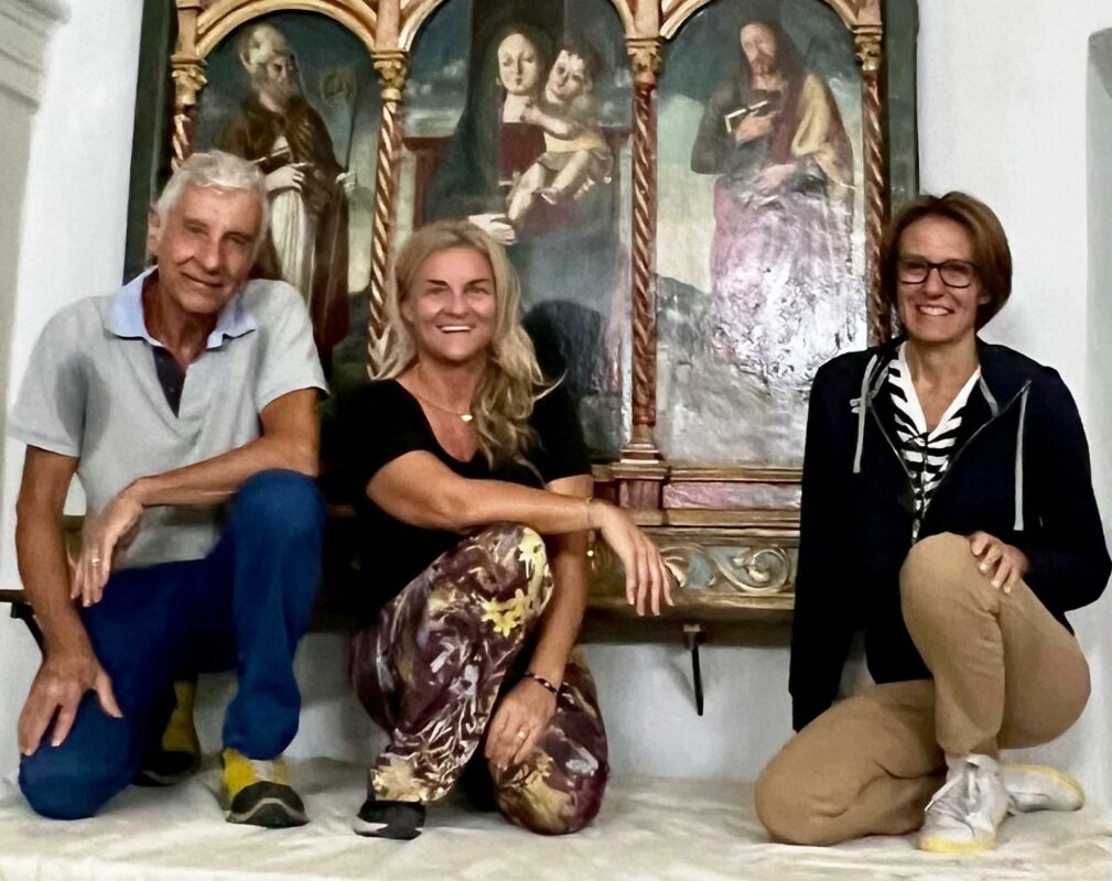 PIAZZA AL SERCHIO – Sabato 4 ottobre nella chiesa parrocchiale di Santa Maria Assunta a Borsigliana, in Comune di Piazza al Serchio, avrà luogo la presentazione del trittico cinquecentesco (FOTO, trittico con la restauratrice Silvia Zecchini al centro e i suoi collaboratori) attribuito al pittore emiliano Lorenzo Costa, dopo il restauro realizzato dalla dottoressa Silvia Zecchini di Lucca, sotto l’alta sorveglianza del funzionario storico dell’arte dottor Valentino Anselmi in servizio presso la Soprintendenza Archeologia, Belle Arti e Paesaggio (Sabap) per le province di Lucca, Massa Carrara e Pistoia. Alle 10,30 ci sarà la celebrazione della Messa da parte del parroco don Marcello Franceschi, con l’accompagnamento del coro parrocchiale, diretto da Virgilio Brega. Seguirà quindi la presentazione, l’ inaugurazione e benedizione del restauro dell’importante trittico datato 1503. Nell’occasione, a cura dei coniugi Donatella Brega e Roberto Pellegrinetti, che gestiscono lo Scacco Matto di Colognola, è stato pubblicato presso la Tipolitografia Amaducci un volumetto, a cura di Dino Magistrelli e Silvia Zecchini, riguardante la storia del trittico e la descrizione tecnica del restauro, con numerose immagini, insieme alle testimonianze e ai saluti del parroco, del sagrestano, Amministrazione comunale, di Civitas Borsigliana Odv, di paesani che hanno contribuito al restauro e dei discendenti della famiglia Chiari di Borsigliana, alla quale per secoli il trittico era appartenuto, come facente parte di un altare presente in chiesa, di giuspatronato, cioè di proprietà, della suddetta famiglia fino al 1959, quando il suddetto altare, ormai vetusto e logoro, fu demolito e il trittico rimase nella parrocchiale. Il volumetto verrà dato in omaggio agli intervenuti. Seguirà un familiare rinfresco per i presenti.
