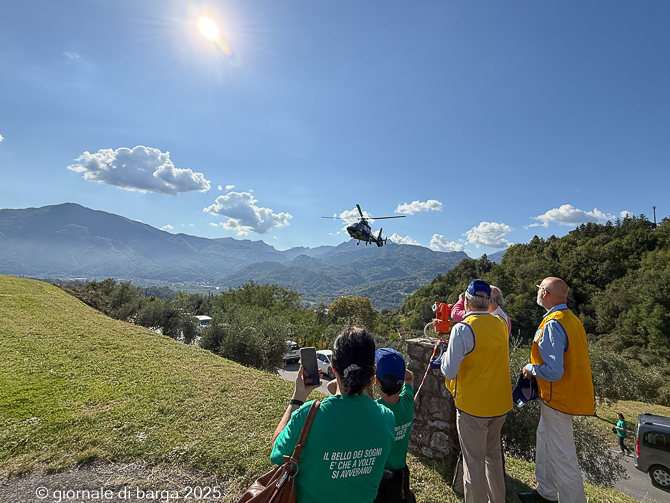 Tra i presenti, oltre ad Andrea Marcucci a fare gli onori di casa, anche l’assessora Maresa Andreotti ed il proposto di Barga Mons. Stefano Serafini oltre al presidente del GVS Francesco Feniello. Il presidente del Lions Club Garfagnana ha espresso gioia , gratitudine e soddisfazione per un pomeriggio che ha regalato tanto a tutti ed ha ringraziato, per averlo reso possibile, la famiglia Marcucci on le sue aziende ed il Gruppo KME per la loro generosità e tutto lo squadra di volontari, piloti, tecnici e soci Lions che ha reso possibile sia a terra che in volo questa esperienza.