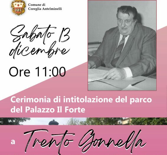 È un invito a partecipare – rivolto a tutta la cittadinanza – quello che l’Amministrazione Comunale di Coreglia Antelminelli fa in vista della cerimonia pubblica di intitolazione del parco del Palazzo Il Forte a Trento Gonnella prevista per le ore 11 di sabato 13 dicembre.