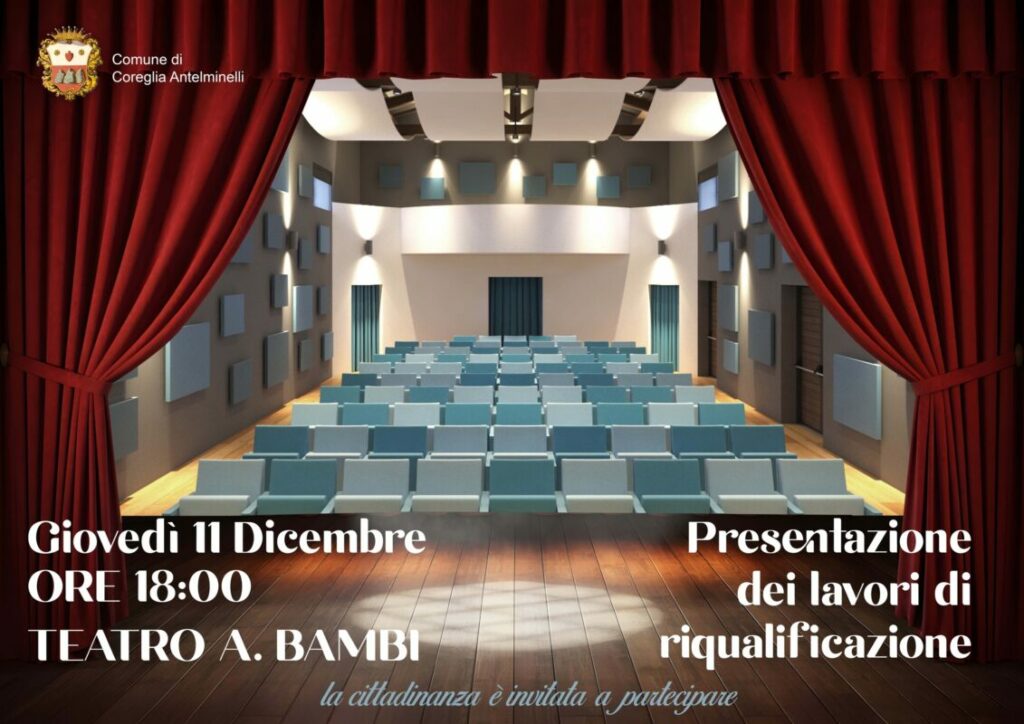 L’Amministrazione Comunale di Coreglia Antelminelli presenterà alla cittadinanza, giovedì 11 dicembre alle ore 18, i lavori di riqualificazione del Teatro “Alberto Bambi” alla presenza dei tecnici che hanno sviluppato il progetto favorevolmente accolto dalla Soprintendenza.