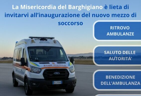 BARGA – C’è grande entusiasmo e attesa per l’inaugurazione della nuova ambulanza della Misericordia del barghigiano che verrà presentata e benedetta domenica 7 dicembre alle ore 15 a Barga sul piazzale del fosso.