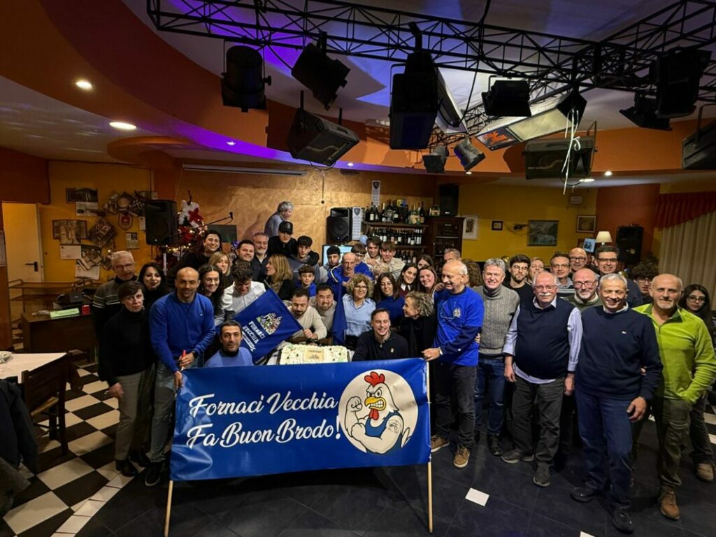 FORNACI – Giovedì 11 dicembre, nelle sale parrocchiali della chiesa di Cristo Redentore, alla presenza del sindaco Caterina Campani, si è tenuta la presentazione del libro “Blu senza frontiere” scritto da Patrizia Farsetti, Aldo Cheloni e Martina Salotti e che immortala fotograficamente l’edizione di “Fornaci senza frontiere 2025” con la vittoria del rione di Fornaci Vecchia. Il libro è realizzato con stupende foto in 4k realizzate da Graziano Salotti e Amerigo Paita e impreziosito da pagine che riportano interviste e filmati relativi ai giochi, che utilizzano la tecnica della lettura scanner QR. La serata si è conclusa con una bella cena al ristorante “il Bugno”.