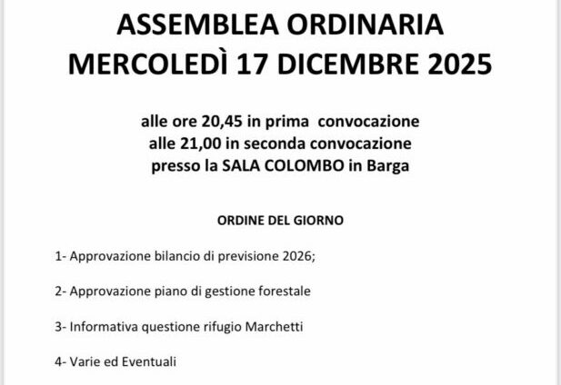 All’ordine del giorno l’approvazione del bilancio di previsione 2026; l’approvazione del piano di gestione forestale e una informativa sulla sempre complicata e tormentata vicenda giudiziaria del Rifugio Marchetti al Lago Santo oltre a varie ed eventuali.