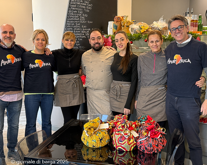 MOLOGNO – Panettoni di solidarietà. Sono quelli che l’associazione AmatAfrica metterà in vendita a Barga, durate la manifestazione Barga in Cioccolato dal 6 all’8 dicembre. Cento di questi, panettoni artigianali realizzati dalla Rosticceria Bella e Pronta di Mologno, nel comune di Barga, sono stati messi a disposizione dal titolare Corrado Daddoveri a nemmeno il prezzo di costo. Rivestiti con le bellissime stoffe artigianali africane realizzate dalle cooperative di donne con le quali l’associazione collabora in Ruanda, saranno venduti per aiutare le cooperative ruandesi per acquistare beni primari per i bambini della missione di Muhura in Ruanda nei giorni di sabato 6 e domenica 7 dicembre in occasione, come detto, di Barga in Cioccolato.