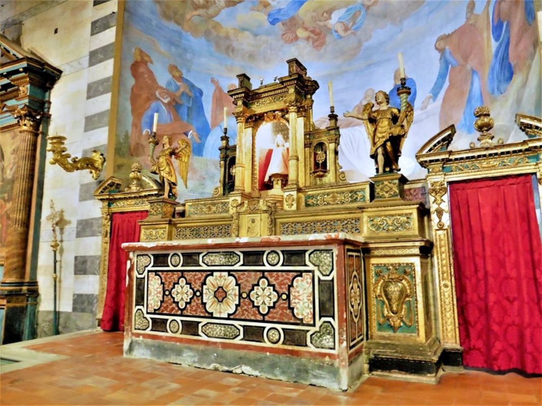 LOPPIA – Nell’ambito degli interventi della ristrutturazione in corso nella Piene Romanica di Loppia, c’è stato il 22 gennaio scorso il sopralluogo della Sovrintendenza ai beni artistici di Lucca, unitamente alla responsabile ai beni ecclesiastici di Pisa e dei restauratori incaricati. Il sopralluogo ha dato di fatto inizio ai lavori di restauro dell’altare maggiore, altare ligneo, ricoperto in foglia d’oro, realizzato nella metà del 1600. L’altare ed il relativo ponteggio ora sono ricoperti da un grande telo che riporta però l’immagine dell’opera d’arte.