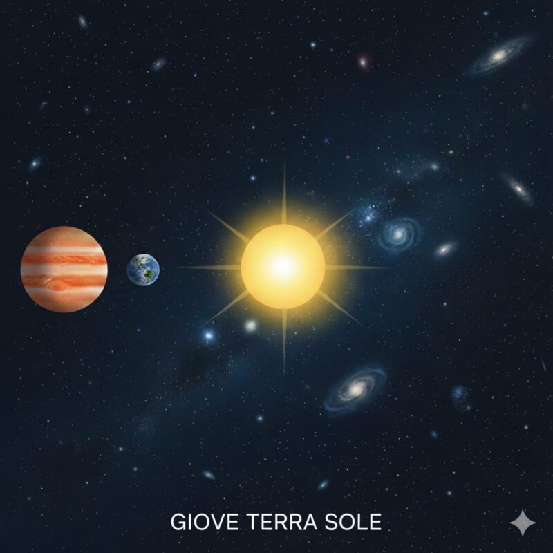L’immagine realizzata in Gemini AI schematizza la posizione dei pianeti Giove e Terra rispetto al Sole. Consiglio anche l’utilizzo dell’app Stellarium che vi supporterà nell’osservazione del cielo col vostro smartphone.