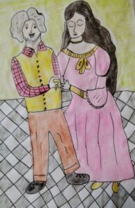Così i due la seguivano, le facevano l’occhiolino e Margherita non sapeva che fare perché non aveva mai avuto corteggiatori. Quando l’anziano le parlò d’amore, lei se ne innamorò subito, i due passavano le giornate insieme perché erano pastori e lui forse le raccontava anche delle “balle” pur di conquistarla.