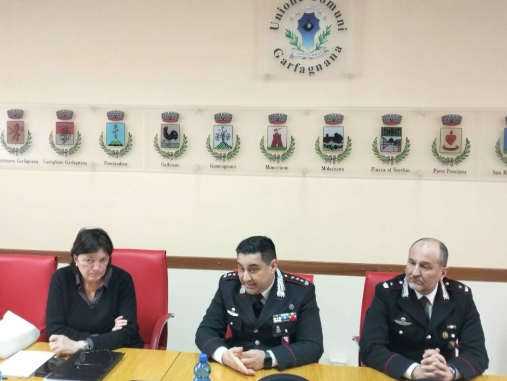 GARFAGNANA –Lunedì 23 febbraio il Col. Michele Lastella, Comandante Provinciale dell’Arma dei Carabinieri di Lucca, ha fatto visita, accompagnato dal Mag. Biagio Oddo, Capitano della Compagnia Carabinieri di Castelnuovo di Garfagnana, ai Sindaci presso la sede dell’Unione Comuni Garfagnana.