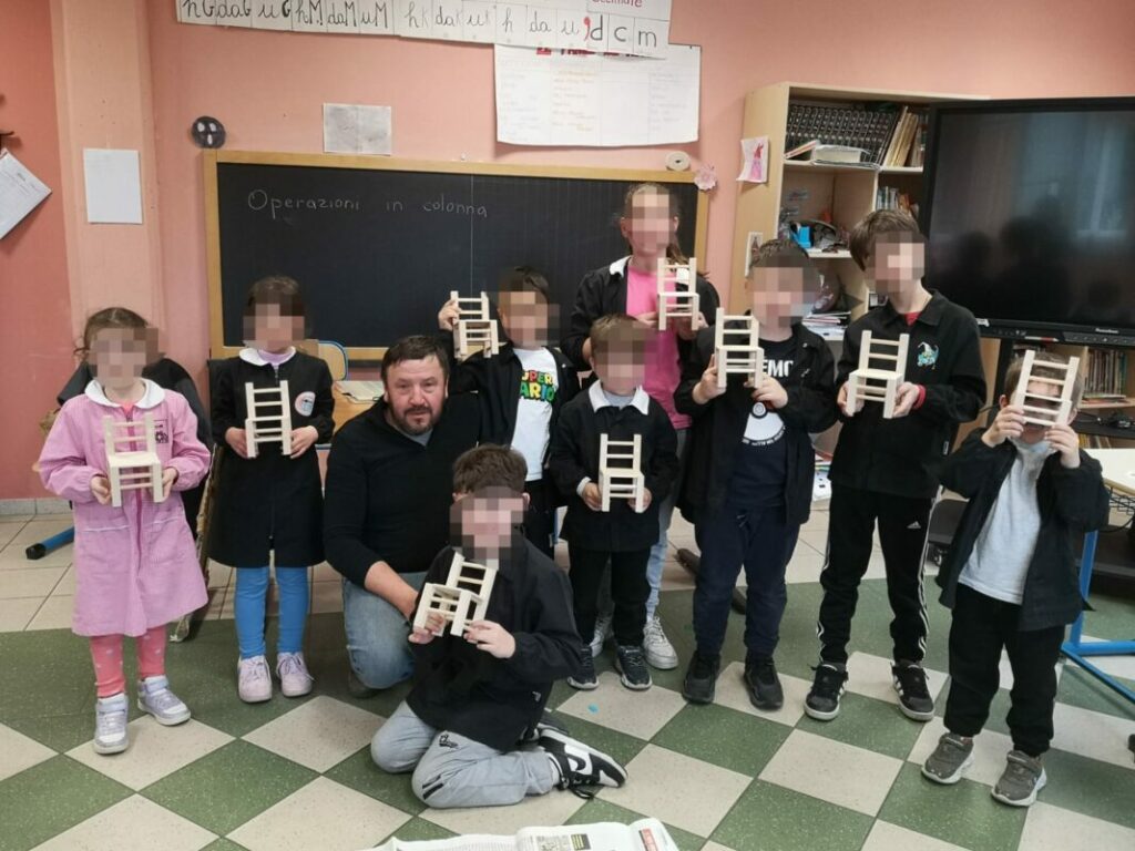 GORFIGLIANO – Le mani d’artista: la lavorazione del legno. Bambine e bambini della scuola primaria di Pieve San Lorenzo e della primaria di Gorfigliano hanno costruito una “mini-sedia” come quelle al Museo dell’Identità dell’Alta Garfagnana O. Cammelli di Gorfigliano, nel laboratorio tenuto dal falegname Nello Collarini, grazie al calendario di iniziative di Opus Mirabilis.